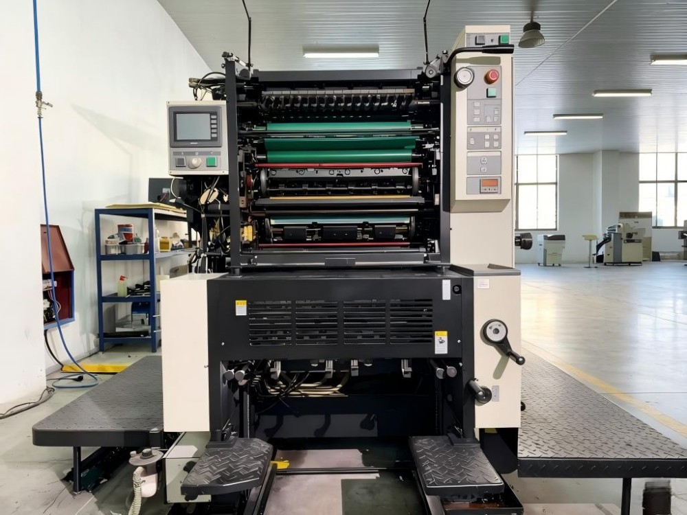 Deze A2 tweekleurige offsetdrukpers voor het afdrukken van etiketten werkt op vellenpapier. Het is ontworpen en gebouwd door Weihai Printing Machinery Co., Ltd. en ondersteunt grootformaatpapier vanaf A2-formaat en groter. Het wordt veel gebruikt voor hoogwaardige etiketten- en kleurenafdrukken in kleine tot middelgrote productieruns.