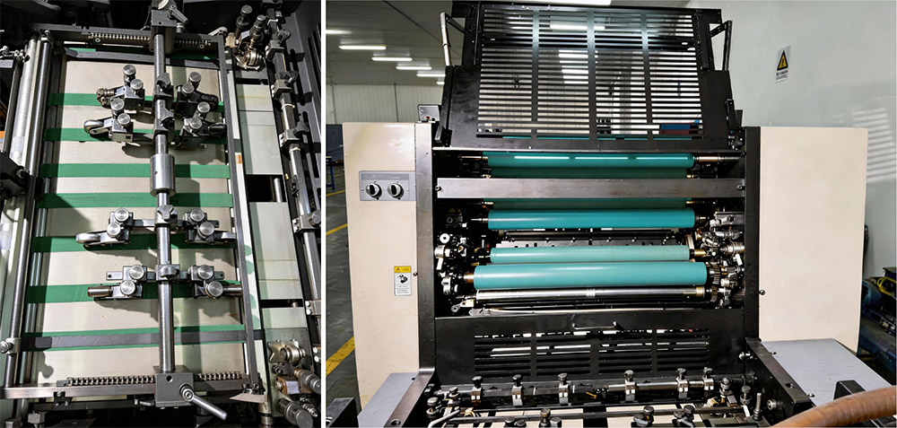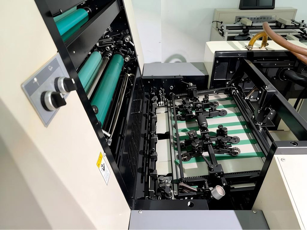 6) Papiertransportmechanismen zoals papierinvoerkop, papiertafel, voorgeleider en papiergrijpers zorgen ervoor dat de pers op een breed scala aan papiersoorten kan afdrukken, van dik papier tot dun papier.